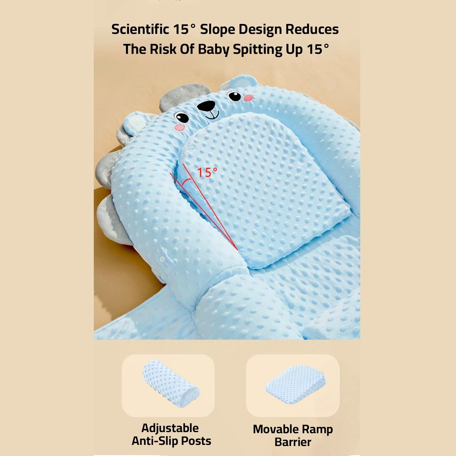 Anti-Spitting Pillow: Scientifically designed with a 15° incline to reduce the risk of spit-up.